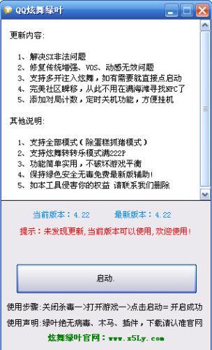 由于注入游戏原因部分杀毒软件可能会误报,炫舞绿叶绿色无毒请放心使用。