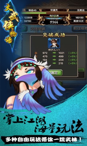 大武侠物语BT版,一款精彩的热血武侠RPG手游。游戏以武侠为背景题材,完美再现一个真实热血的武侠江湖世界,各个英雄角色任你体验,轻松书写你的江湖传奇!