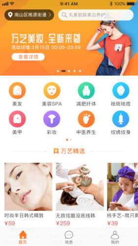 万艺美妆是一款专业的美业服务app,为用户提供美发、美容SPA、减肥纤体、祛斑祛痘、美甲、中医养生等多种功能服务,有需要的用户,赶快来下载体验吧!