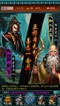 从山顶到山下,依次最高的是阵营系统。在阵营系统中,玩家可以选择成为一个为国为名的正派侠客还是选择加入黑暗的邪派阵营对抗那些所谓的高门大派,确实是正邪本无分,善恶一念间啊。