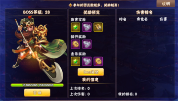 等级达到15之后可以创建或者加入军团,通过军团成员花费银币、元宝建设军团大厅来提升军团大厅等级。在军团大厅里,我们看到有军团BOSS、军团战、军团任务、军团商店等各种玩法。先来说说军团BOSS吧。军团BOSS会根据军团等级变化而变化,弹性机制,有利于初创军团的击杀。并且军团BOSS是由官员召唤而出,时间上变得可控。BOSS血量每减少百分之十,就会掉落宝箱,宝箱中有大量的军团活力、活力银两、经验,所以各位主公要好好输出啦。