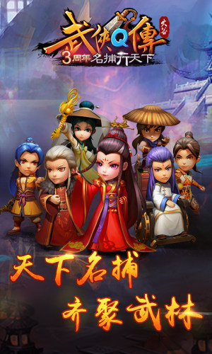 《武侠Q传》最萌最Q的新派武侠卡牌游戏! 3D人物画面将战斗可视化呈现;自创武林秘籍配合武侠缘分千变万化;天下第一千万玩家齐参与,跨服乱斗;千元新人大礼来玩就送,新视觉、新玩法、新福利带你体验新派卡牌独特魅力。