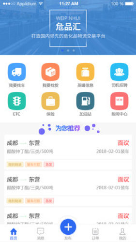 危品汇是一家专业的危化品物流行业交易平台。危品汇为用户提供车货市场、物流管理、信息咨询、供应链金融等功能的一站式物流解决方案,致力于解决危化品物流行业中存在的信息不对称、交易环节不透明、物流配送不可控、信用机制不健全等问题。
