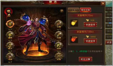 点金等级提升需要消耗装备精华,装备精华除了直接购买外,还可以通过挖掘尸体以及分解2~4转装备获得,2~4转的山鸡装备和火华装备都可以分解获得积分哦,值得一提的是,玩家分解装备需要在点金-精华兑换界面,点击“前往分解”,在这里分解才能获得装备精华哦。