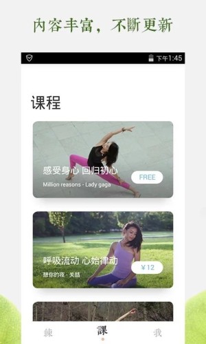 一首瑜伽下载安卓版,用一首歌的时间来练一段瑜伽,让用户快速进入舒缓放松的状态,一首瑜伽app由真人指导专业优质,还有不断更新的瑜伽课程。