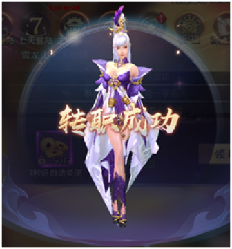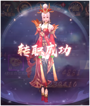 完成四个阶段即可完成转生,主角将会蜕变“落霞仙子”的全新职业!并且激活三转技能“落庭莎”和“织羽化翼”同时能够获得更加华丽的外观造型!