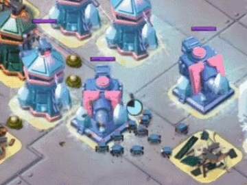 U字地形,爆本路程较远。火箭喷射器群体压岸,四个护盾一个防空护盾坐落在地图后方,四个西蒙狙击塔紧贴大本,爆本位置较狭窄。