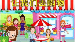 "让我们去购物,边买东西,边享受乐趣。我的城镇商店有好玩的东西、有趣的参观地点和众多可尝试的项目,应有尽有。糖果店、超市、时装店和食品货车拥有200多款不同的物品和角色,一切准备就绪,等待您尽享游戏之乐!