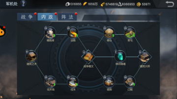内政科技影响建筑升级和资源生产的效率,例如建筑升级时间缩短、建筑升级消耗减少、各种资源的产出提高等。