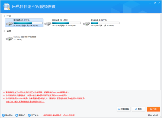 3、本软件只恢复MOV/MP4视频。如果需要恢复其他文件,请使用《乐易佳数据恢复专业版》软件恢复。