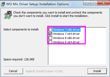 1、首先安装的时候进行选好自己的系统,(WO Mic Client和驱动WO Mic Driver都要进行安装)