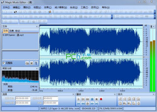 在Magic Music Editor里录好一段音频,可以很直观的看见它的波形显示.如果输入音量太小的话,则波形就窄,接近直线.对于人声,吉他等动态范围较大的声音,如果输入太小,绝对是不好的,首先音乐声小的话,噪音占整体音量的比重将更大,其次在后期制作中,能够作的调节范围也将很小.