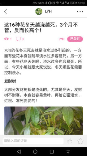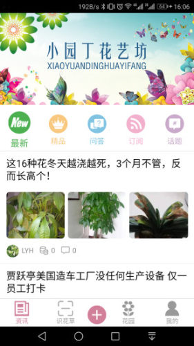 以园艺生活为主线贯穿始终,采用话题板块管理,把纷繁杂乱的资讯分享变得井然有序,用户可以依据自己兴趣对各种话题进行订阅,收藏和分享。同时提供自媒体入口,让一些资深的花友可以把自己在花草养护过程中所提炼出来的各种干货和大家同步分享。
