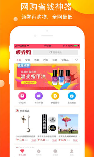 那么9.9包邮呢?没关系,你最想要的9.9包邮,领券购app当然也备好啦!精选商品,超值低价,9.9全场随选随购。