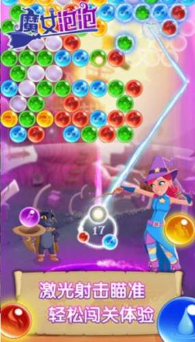 4、BOSS模式:黑暗精灵是魔女的敌人,使用正确颜色的泡泡摧毁黑暗精灵的护盾。黑暗精灵有3个护盾,每击爆一次,黑暗精灵就会向上飞一层,直到全部击爆完毕,即可通关。