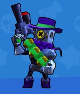普攻:中距离扇形霰弹。BULL的霰弹枪在近距离依然可以造成高伤害,不过五发全中基本就要贴脸射击,比Shelly的距离更近。大招:向一个方向发起冲锋,对沿途敌人造成伤害并击退,可穿墙,射程远。BULL 就像一个高血量版的 Shelly,但是射程较短。BULL 的大招可以用来逃跑或追击敌人。BULL 的定位更像是厚血量与攻击力兼备的战士,他和纯肉定位的 EL PRIMO 血量仅低1000,生存能力极强同时有不俗的伤害。和输出型的角色有很高的适应性。但较短的攻击距离是他的弱点。