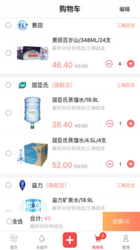 3、批发购水:水店商家可以直接在平台上订购各种品牌的桶装水、支装水、水桶、水设备,平台打通了水店商家与桶厂、水厂的订购渠道。