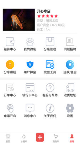 1、功能上新增批发购水,水桶商家,天天领券,余额充值,积分兑换,发票管理等功能。