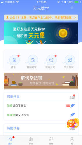 天元数学为初中数学教师提供教学辅助,减轻教师的教学、辅导等工作负担,可以布置作业、批作业、课后答疑、学情分析以及班级管理等,为课后辅导提供参考资料,是简单高效的教学伴侣, 有效提升教学效果。