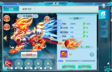 出门行走没有拉风坐骑可不行,坐骑的升阶不但能提升战力,还能改变形象。