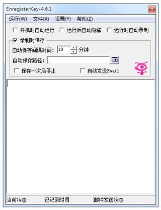 Enregisterkey可以帮助您监控电脑键盘打字输入的记录,当您需要知道对方在电脑上输入了哪些内容,或者是记录自己今天使用键盘进行了哪些操作,就可以利用软件的自动监控功能,记录所有键盘按键的输入历史,将每一个时间段的信息自动保存到TXT文件上,方便您自己查看记录的内容,也可以通过邮件的方式发送到指定邮箱上,这样就可以在远程监控对方电脑的输入情况;enregisterkey(电脑监控工具)使用过程简单,设置的功能也不复杂,可以轻松记录电脑上一切使用键盘打字的记录。
