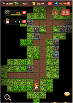 丛林中富含大量的矿石和宝石,玩家可以挖掘后用于英雄的强化。但是由于丛林是随机生成的,宝石是没有那么容易找到的,玩家需要砍伐路上地块的树木障碍,逐渐探索到丛林深处,才能挖掘到稀有的矿石和宝石。