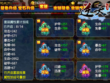 《逆天仙魔录》装备共分十个部件:头盔、衣服、腰带、裤子、鞋子、披风、玉佩、护腕、戒指、香囊。现阶段装备又分十四个等级,分别为光辉、将星、紫云、帝玄、飞仙、疾风、龙鳞、杀戮、真天、无邪、度法、升仙、福灵、乾坤。当全部部件到达同一个等级,除了装备自带的属性,还将激活套装属性,为玩家带来全面属性加成。