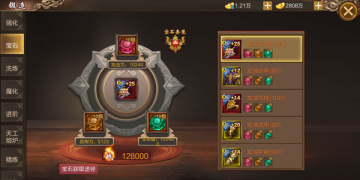 1.每件装备由3个镶嵌槽,3个槽位会在装备强化+4、+5、+6的时候分别解锁,对应可以镶嵌攻击、防御、生命3种类型的宝石;