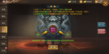 消耗2件同阶魔化仙器,生成1件随机部位高1阶仙器(不含仙佑、特戒)。