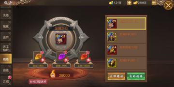 合成可以消耗低级宝石、低阶丹药,获得更高1级的宝石和丹药;合成还可以消耗橙装碎片,合成橙装。