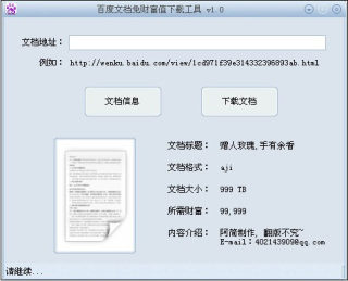 所谓的“免财富”,其实是不需要你有百度账号并且有财富值,本软件是从百度本站下载原始文档,原始文档哦,亲,所以不要财富值是不可能的,只是这财富值不是你自己的而已。