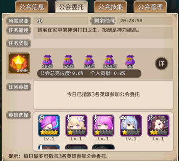 公会委托的任务其实和普通的主城任务区别不大,选择英雄委托后获得奖励。但是注意哟,奖励是根据整个公会的完成度比例进行发放的,所以一个人的力量是完全不够滴!想要获得丰厚的礼包,一定要呼朋唤友一起完成委托噢!