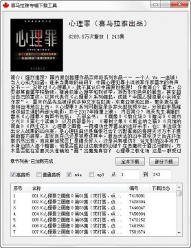 喜马拉雅专辑下载工具是一款可以批量下载喜马拉雅专辑的软件。软件界面简洁,使用方便,且绿色无需安装完全免费,让你一键轻松下载喜欢的专辑,有需要的用户赶快下载吧!