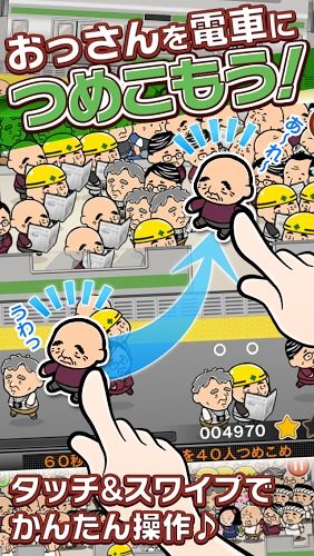 上班族最烦恼的事情是什么?当然是挤地铁了!每天都要用尽全身的力量才能挤上狭小的车厢,如果遇到个满身酒气的醉鬼或者不在乎他人感受的怪人,这一路可是真够受的。现在这样的真实场景被搬到了手机当中,“大叔上车 Ossan Train Stuffing”就是一款帮助大家挤地铁的休闲游戏,我们一起来试试吧。