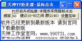 热键为F2!抢麦时将鼠标放到抢麦的按钮上然后按下F2!即会自动点击抢麦按钮!直到再次按下F2后方会停止