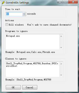 是否有过这样不幸的经历?没关系,以后都不会有了,GoneIn60s就是这样一款功能专一的软件,启动之后可在60秒内挽救你不慎关闭的程序,你也可以设置为更长的保护时间。