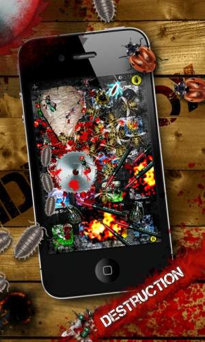 《臭虫毁灭者 iDestroy》是一款让你用多种武器虐杀臭虫的休闲游戏。看到那些满地乱跑的臭虫了么,现在给你一堆武器,去无情地把它们碾碎吧。你甚至可以使用自己的照片作为背景,只要你愿意,然后一片杀戮之后,地上满是臭虫支离破碎的尸体。游戏里免费提供了几种武器,并且可以通过商店购买更多武器。最后,你该不会想那核弹干掉那些可恶的臭虫吧。