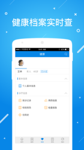 【健康档案查询】居民用户通过APP健康档案模块,可以实时查看本人的历史就诊记录等相关信息;