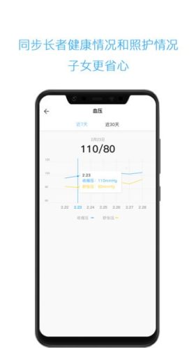 可以同步老年人健康数据,子女们可以通过手机查询健康数据情况;
