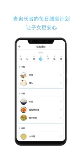 饮食计划:查询每日长者的每日膳食计划,让子女更安心;