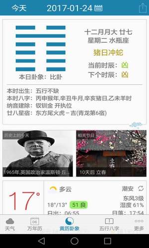 周易万年历app是一款功能强大的手机万年历,软件拥有黄历卦象,万年历,五行八字,天气,周公解梦,历史上的今天等诸多功能,觉得不错的朋友欢迎前来下载使用。