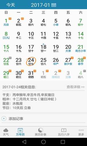 2、万年历:农历黄历随便看,节日由来、忌宜、财神贵人方位、奇门九星、时辰吉凶、八字五行、纳音建除,万年历该有的都有!可每天记事!