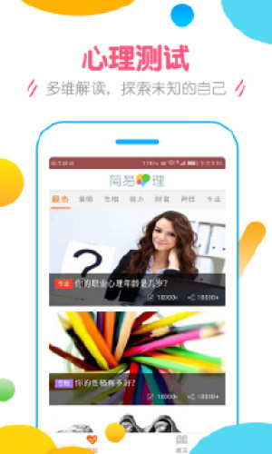 简易心理下载安卓版,关于各种心理的趣味测试,让你可以更加了解自己,同时简易心理app还有很多心灵治愈美文,感兴趣就来了解一下!