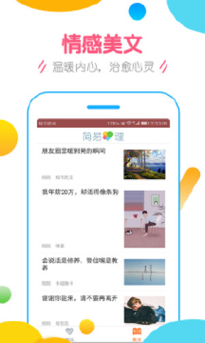 美文阅读——简易心理为用户提供新鲜的美文阅读,在心理评测的同时玩味文字的魅力,享受阅读的乐趣,找到更好的自己。