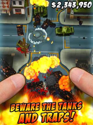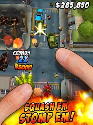 拇指奇拉让你成为一个城市破坏者,就像经典的破坏角色哥斯拉。你所经过的地方必须变成废墟,体会践踏城市所带给你的罪恶感。压垮房子,挤压车辆,踢翻坦克,令弱小的人类畏惧,但是城市并不会纵容你,他们会派出警察,坦克和武装直升机对你进行反击。所以你要第一时间摧毁对你产生威胁的敌对单位。当你损毁建筑物后,有一定几率掉落道具,拾取它们你会发现游戏更加有趣。