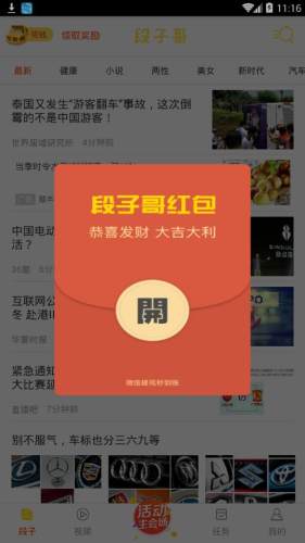 段子哥APP看段子看新闻都能赚钱,以平台、媒体、用户共赢的特点方式。为每一位用户“私人定制”您喜爱的内容。