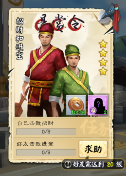 其中玩家完成两星悬赏令后可以获得20000铜钱和随机的四象、八卦侠岚碎片;