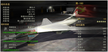4号位:图-160。所有橙机中唯一一架技能“连续攻击”(全体随机攻击2架敌机)的机体,你值得拥有!前期副本即可开刷碎片,改造难度低。