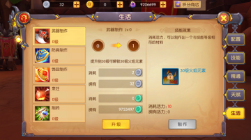 三元素:火焰元素、纯水之源和生命之心可以去刷副本获得,也可以使用生活技能制作。生活技能的提升是需要消耗贡献度的,所以加入一个靠谱的公会是非常有必要的。