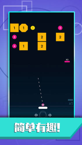随着砖块的下降,试着调整角度,收集更多的小球,让小蛇变长,打破所有的砖块!